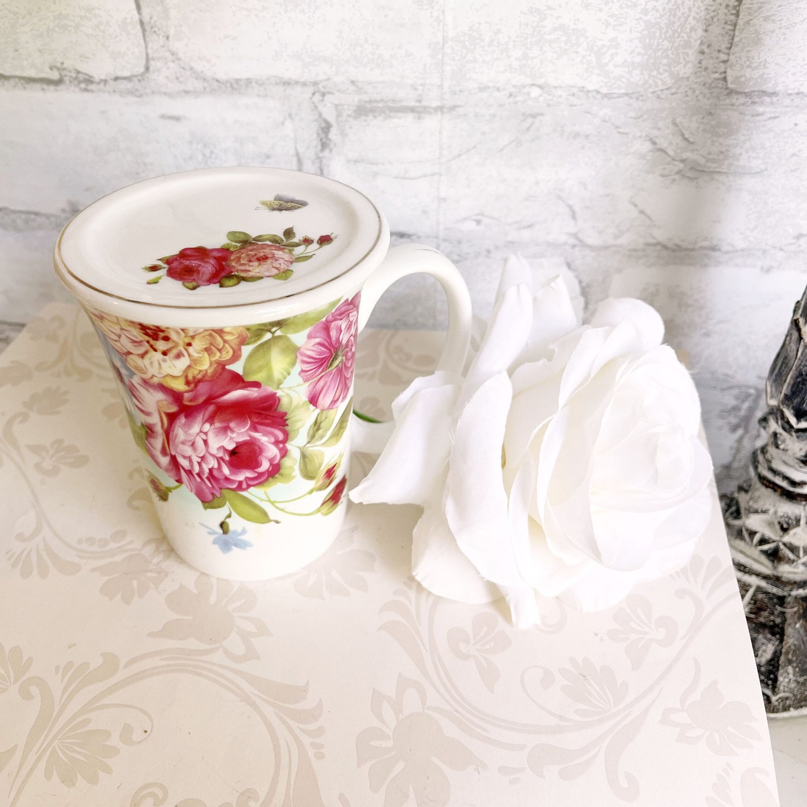 *****This Gorgeous Cup/Mug is 4 1/2″T x 5″W across handle x 3 3/4″D with the lid on
