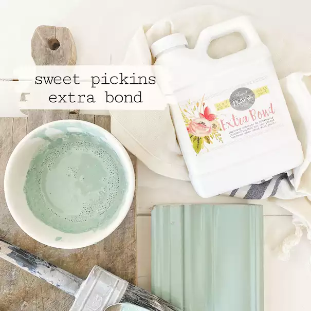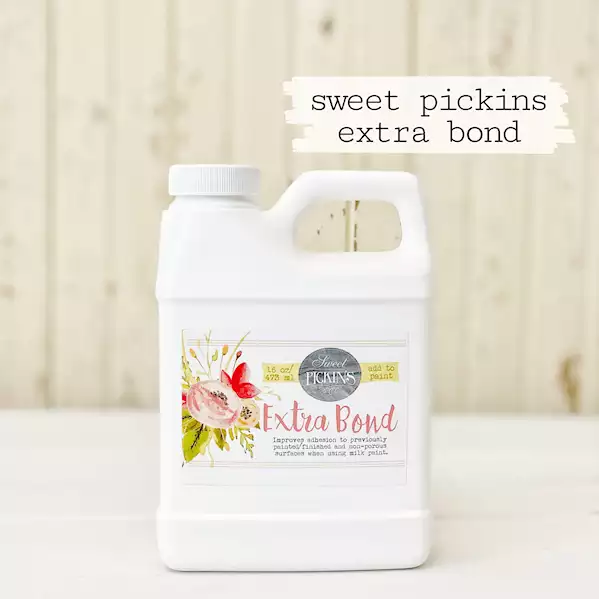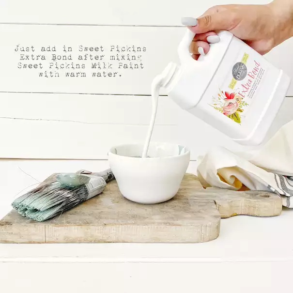 A water-based, V.O.C. free, low odor, non-toxic polymer additive for Milk Paint that greatly improves adhesion to non-porous surfaces including close-grained hardwoods.